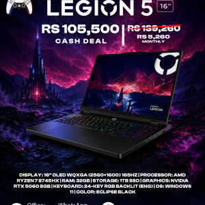 Laptop, NEW PRODUCTS, Summer Sales 2025Lenovo Legion 5 16″ WQXGA 240Hz Gaming Laptop, Ryzen 7 8745HX; NVIDIA GeForce RTX 5060 8GB GDDR7; 32GB DDR5 RAM; 1TB NVMe M.2 SSD; Gigabit LAN, 2×2 WiFi 7