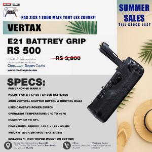 - Vertical shutter release button on the Battery Grip makes shooting with the camera in a vertical position much easier, adding stability to the camera.