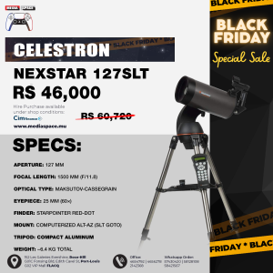- MAKSUTOV-CASSEGRAIN OPTICAL DESIGN: With a large, 127mm aperture, the NexStar 127SLT can gather enough light to see our Solar System and beyond. View Saturn’s rings, Jupiter’s cloud bands, the Moon’s craters, and the Orion Nebula in brilliant detail.