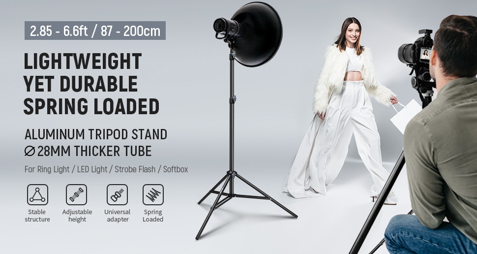 - 【Spring Cushioned Light Stand 】Spring device keeping all your stuff in safe without worrying any poor structure ruins your shooting schedule. good used for mounting strobe lights, monolight, reflectors, umbrellas, softboxes and other photographic equipment.
