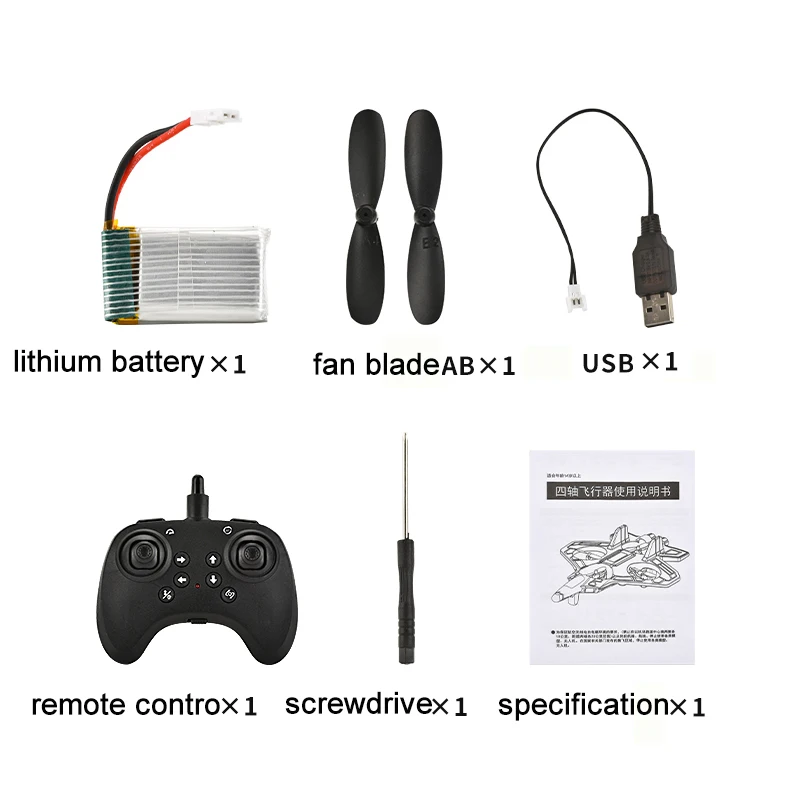 Up/Down, Left/Right Turn, Forward/Backward Flight on Left/Right Side, 3D Roll, Roll Conversion, Headless Mode, One-click Return to
