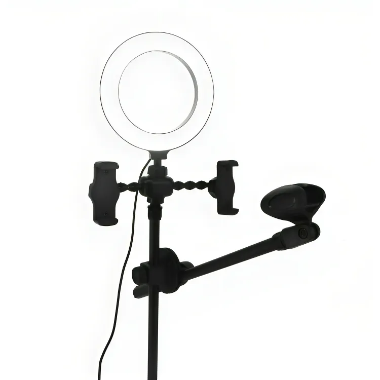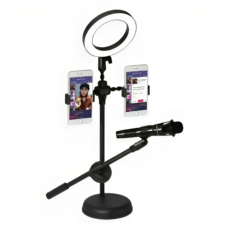 The sturdy metal lamp stand provides stability and versatility, allowing you to position your devices at the perfect height and angle for optimal visibility. No more shaky footage or awkward angles – just smooth, steady shots that keep your viewers engaged.