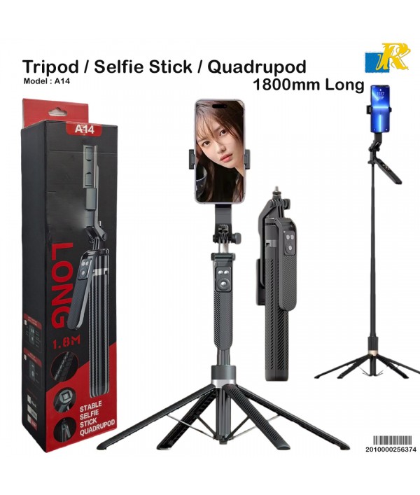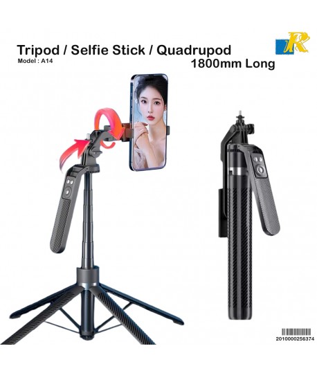 The A14 Quadrupod Selfie Stand is a versatile accessory designed for content creators, vloggers, and photography enthusiasts. Its unique four-leg design ensures enhanced stability on various surfaces, providing a reliable base for your devices. With an extendable height of up to 1.8 meters, it offers flexibility in capturing wide-angle shots and overhead perspectives. The 360° adjustable rotation allows for seamless angle adjustments, ensuring you get the perfect shot every time. Equipped with a Bluetooth remote control, you can effortlessly capture photos or start recording videos from a distance, making solo shoots more manageable. Its foldable and lightweight design ensures easy portability, making it an ideal companion for travel, live streaming, and on-the-go content creation. Compatible with a wide range of smartphones and cameras, the A14 Quadrupod Selfie Stand is your go-to solution for stable and dynamic shooting experiences.