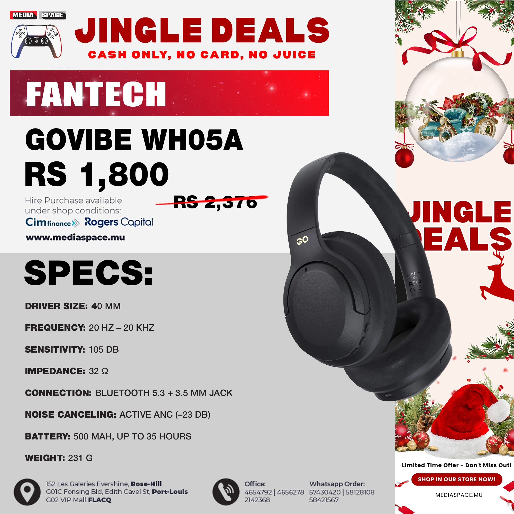 FANTECH WH05A GO VIBE ANC WIRELESS HEADSET – BLACK