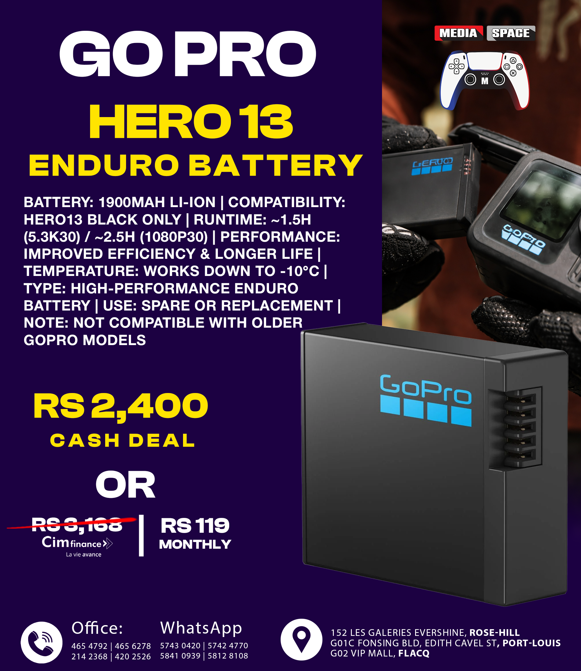 Use Enduro as a spare or replacement for the battery that was included with HERO11 Black and HERO12 Black.