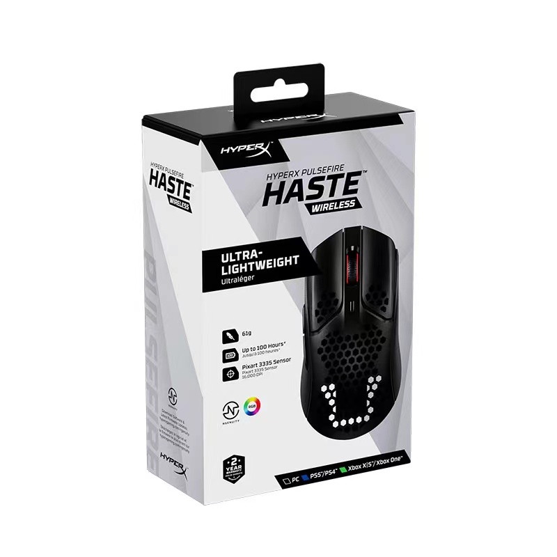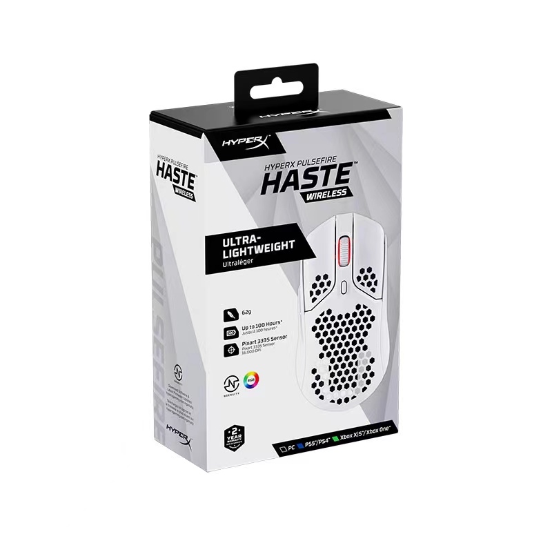 The wireless Pulsefire Haste is a mesh mouse with cutouts which make it lighter than a solid shell mouse, without sacrificing durability. The shell also allows for better airflow and ventilation.