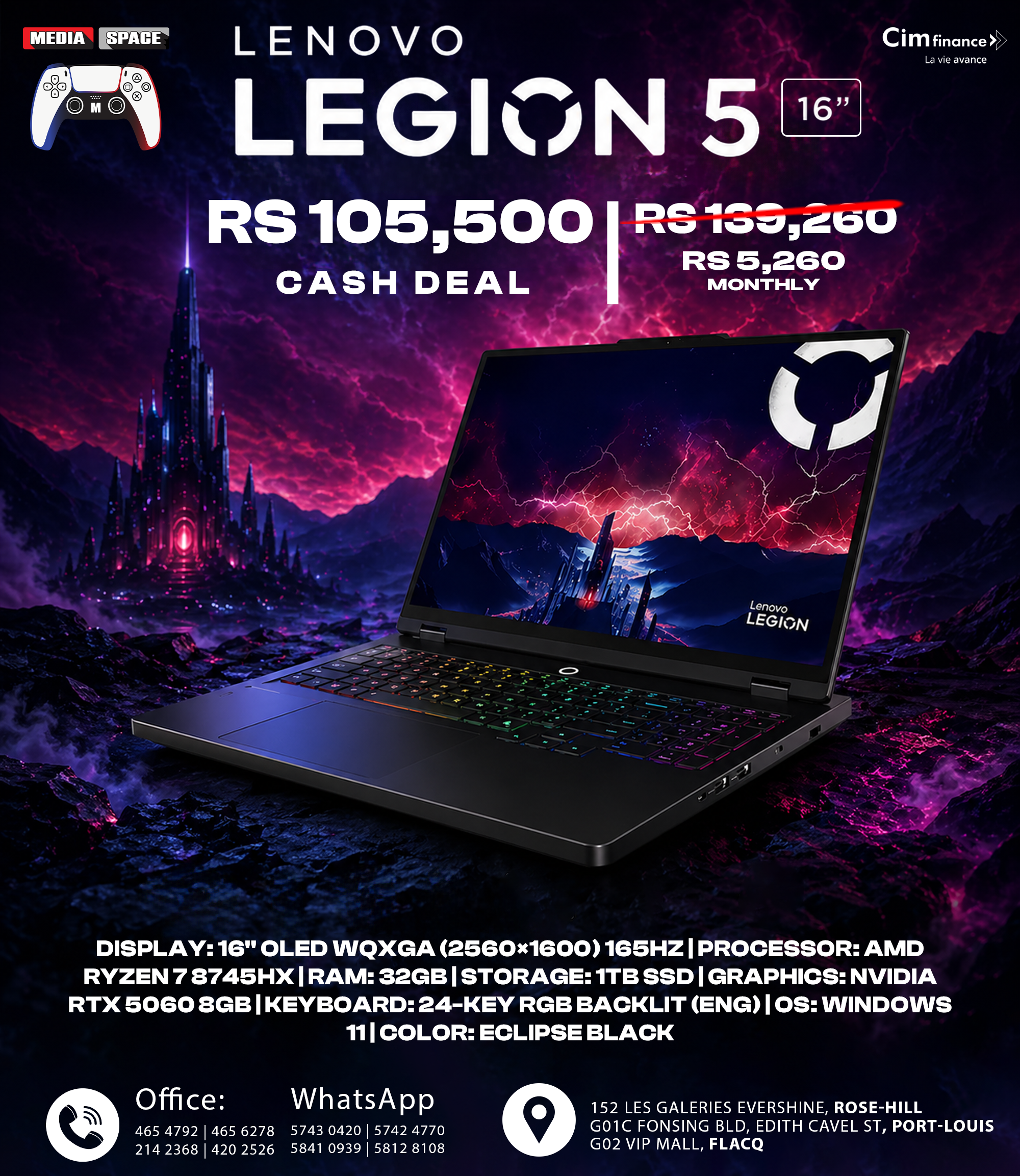 The Legion Pro 5 keeps cool with massive rear vents, ensuring optimal airflow and comfort during gaming. Its Eclipse Black finish, AI-synced RGB keyboard, and durable aluminum build create an immersive, sustainable design. Packed with Ethernet, HDMI 2.1, and an eShutter webcam, it’s a powerful desktop replacement built for competitive play.