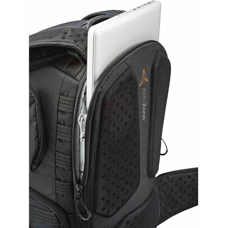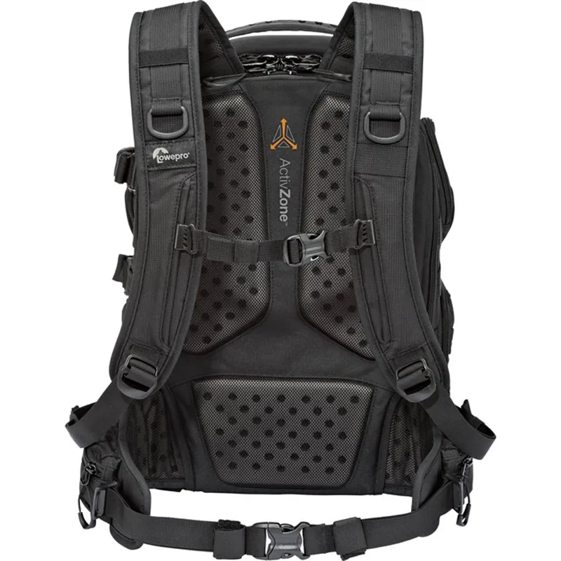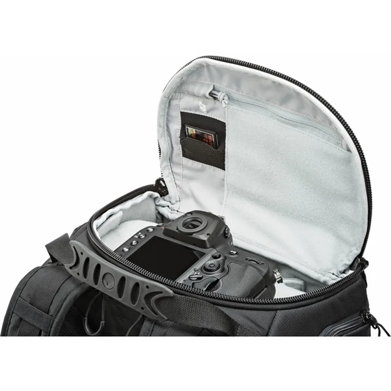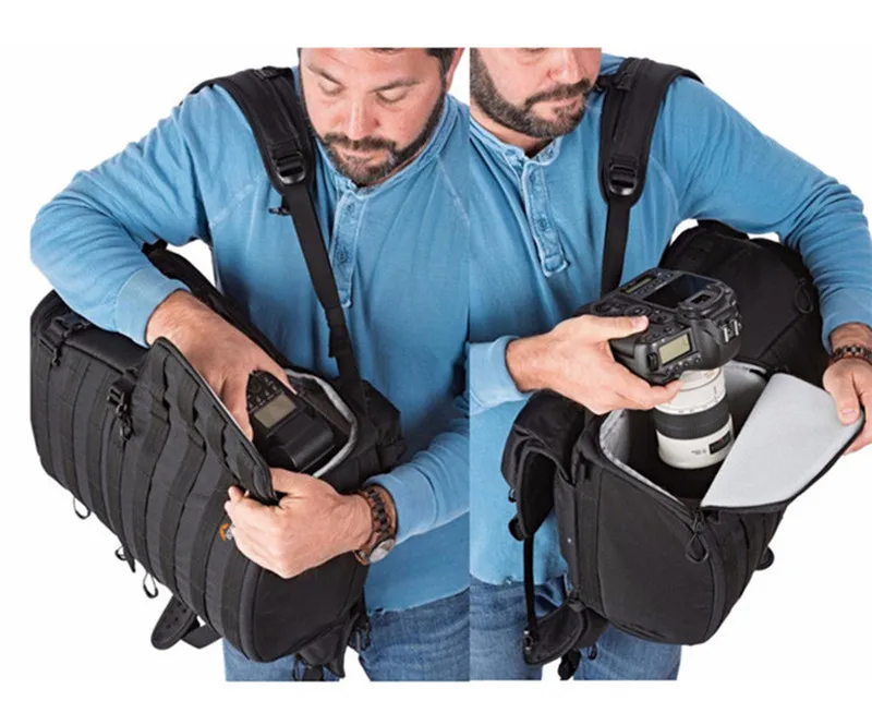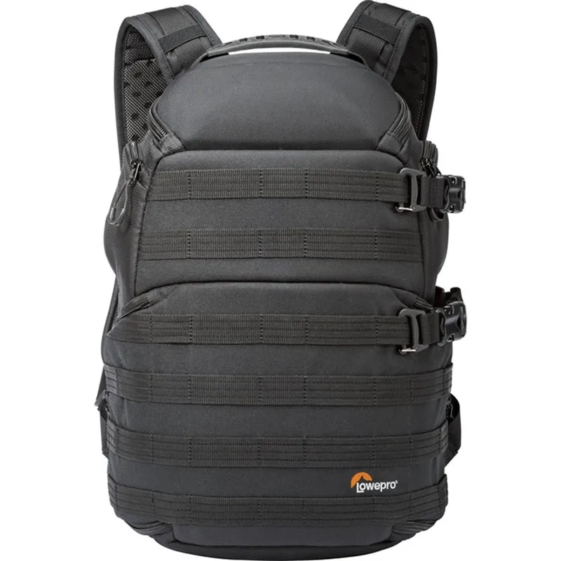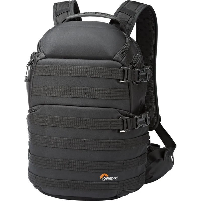 The ProTactic 350 AW delivers high performance to pro photographers who need an urban-inspired pack that delivers on all fronts: accessibility, versatility, comfort and organization.*Never miss a critical mission thanks four access points: the molded, turret-loading top, quick-grab from both sides, and full, back entry for set-up and security*Create limitless set-ups with a robust, SlipLock™ compatible strap system*Get versatile with five modular accessories – water bottle pouch, accessory case, tripod cup and two cinch straps – all SlipLock-compatible and included with pack*ProTactic features ActivZone System™ technology to deliver targeted support at shoulder blades, lumbar and waist for comfort on the move*Remove waistbelt to reduce profile for packing or travel; wear it for extra support and storage – two zippered hip pockets offer space for quick-grab items*Pack the maximum amount of gear and micro-adjust for a snug and secure fit with the patent-pending MaxFit System™ of padded and adjustable dividers*Store your laptop in the CradleFit pocket that suspends and protects your device within the pack*Keep accessories neat, organized and easy to access with multiple interior and exterior pockets*Safeguard valuable gear with the patented, built-in All Weather AW Cover™ that protects pack from the elements*Add a tripod or monopod with cinch straps and tripod cup accessories (included)