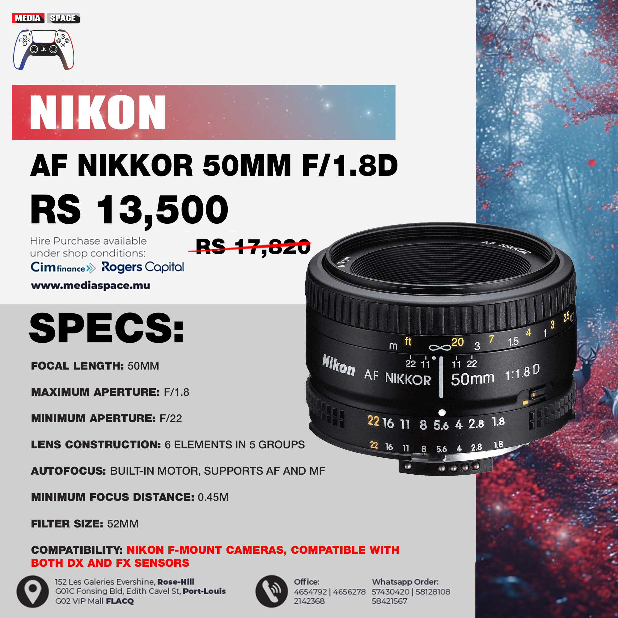 Maximum Aperturef/1.8Lens UV Filter Size52mm