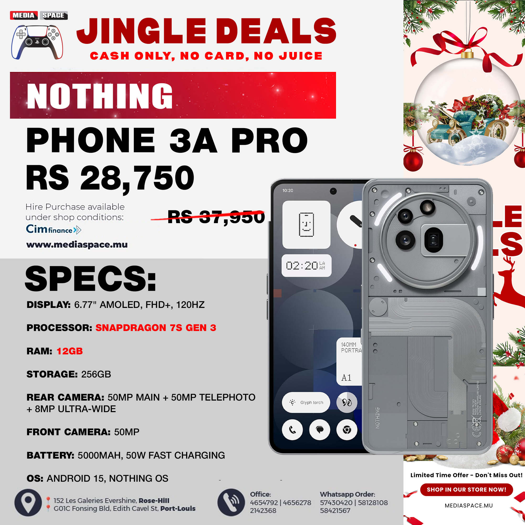 Phone (3a) Pro has a flexible FHD+ 17.19 cm (6.77) AMOLED display that can deliver stunningly accurate colour reproduction of 1.07 billion colours. Boasting a peak brightness of 3000 nits, which is our brightest screen, ensuring superb visibility even in direct sunlight. It also guarantees the display of Ultra HDR photos, utilizing the highest brightness to showcase highlights in images, such as blue skies, lights, and more.