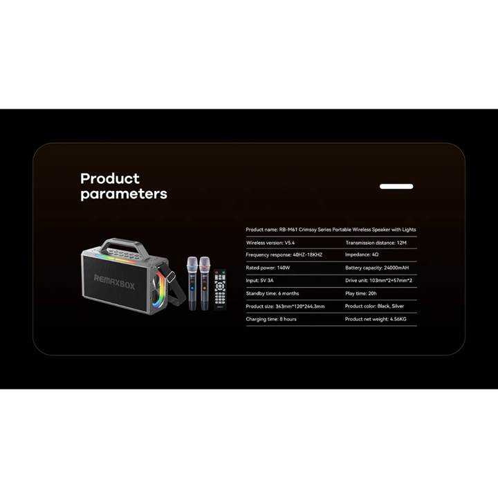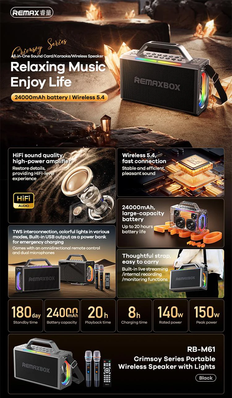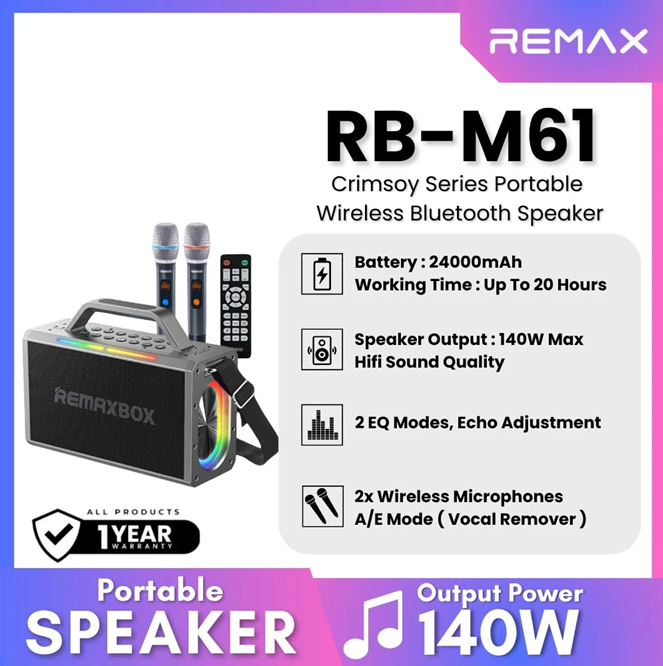Remax Crimsoy Series Rb-M61 Portable Wireless Speaker With Microphones Hifi Sound Qualityhigh-Power Amplifier Bluetooth Speaker