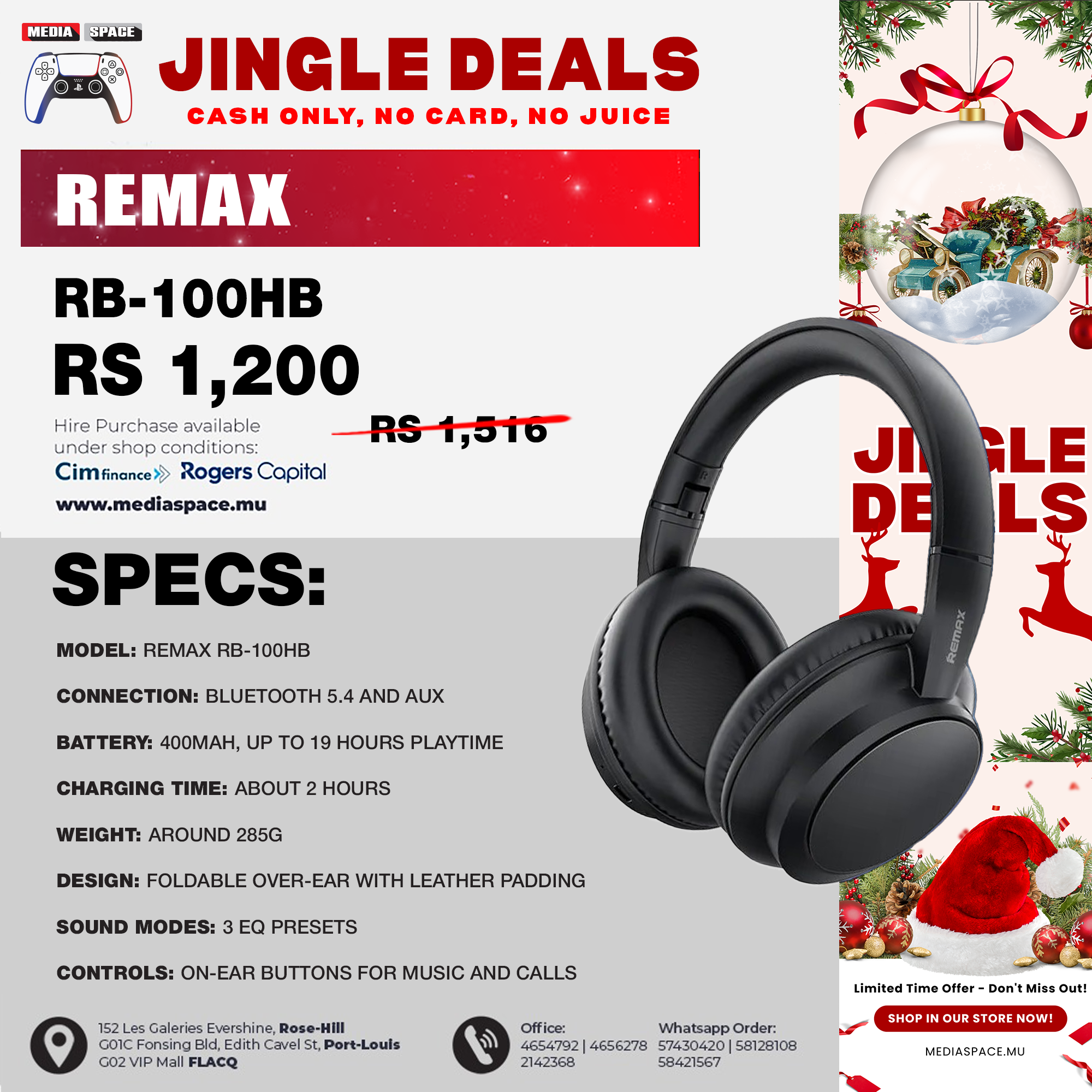 REMAX RB-100HB Wireless Headphones Lightweight Bluetooth 5.4 19H Playback 3 EQ Modes Foldable Design Headphones