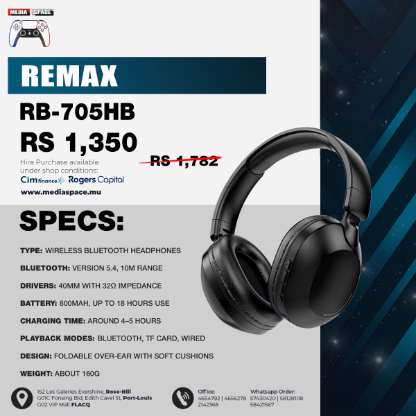 REMAX RB-750HB 5.0 WIRELESS GAMING HEADPHONE HIFI SOUND RETRACTABLE HEADBAND HIFI HIDDEN MICROPHONE WITH TF CARD SLOT – Black