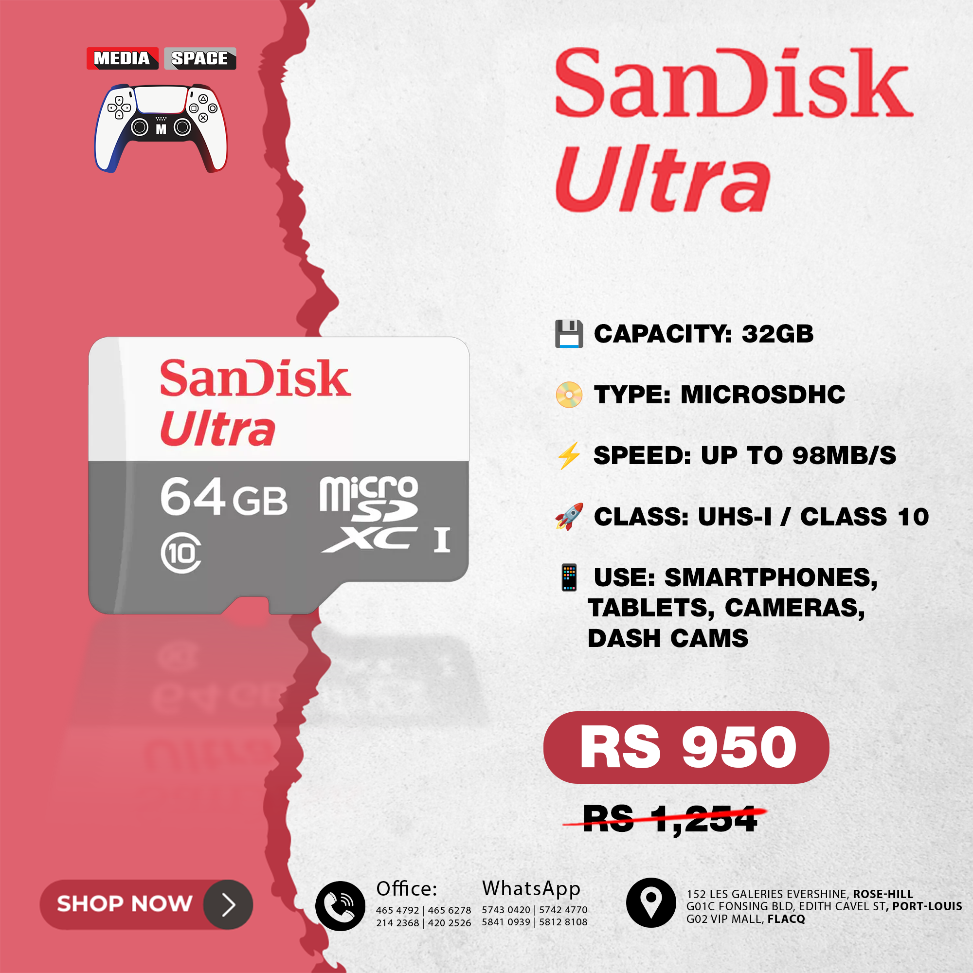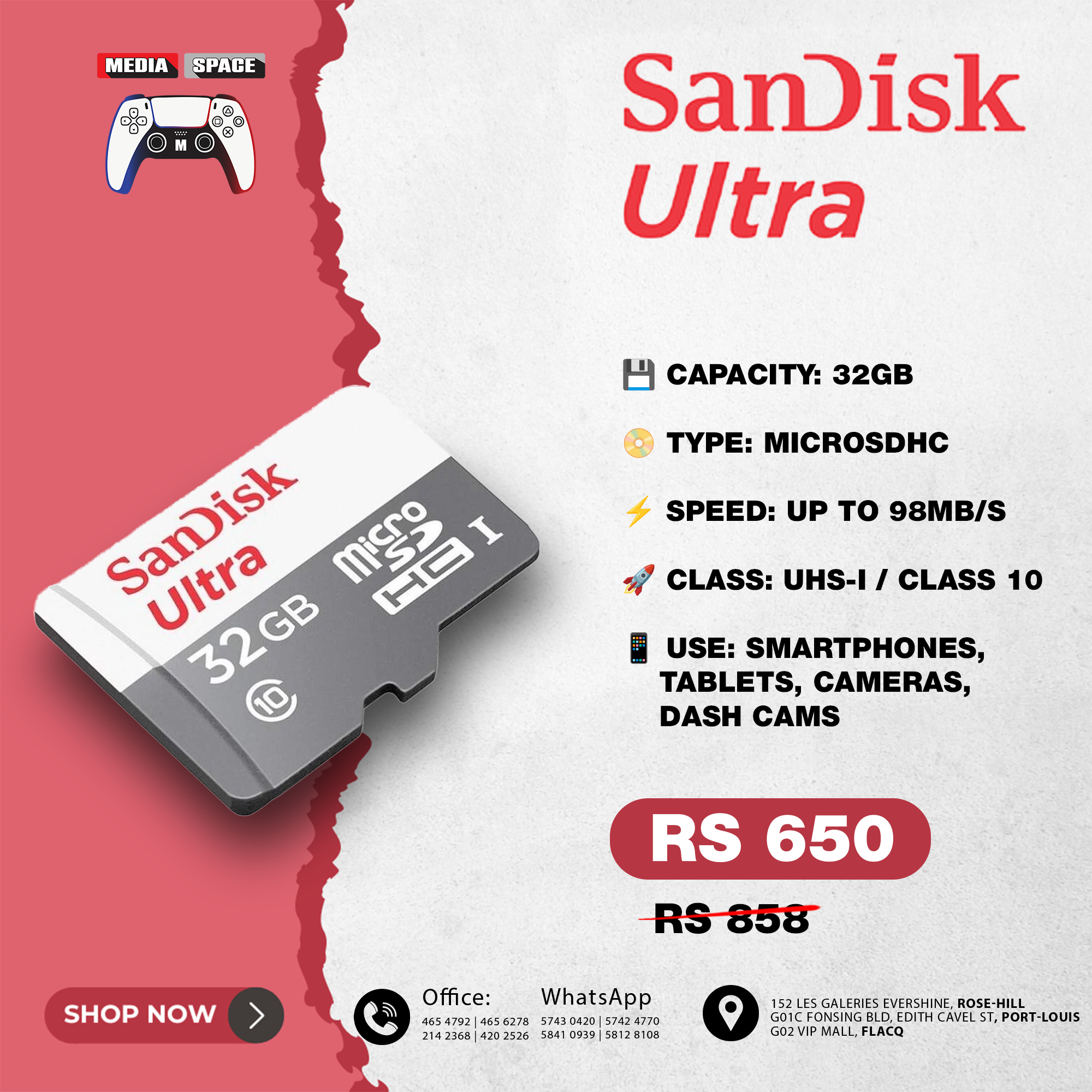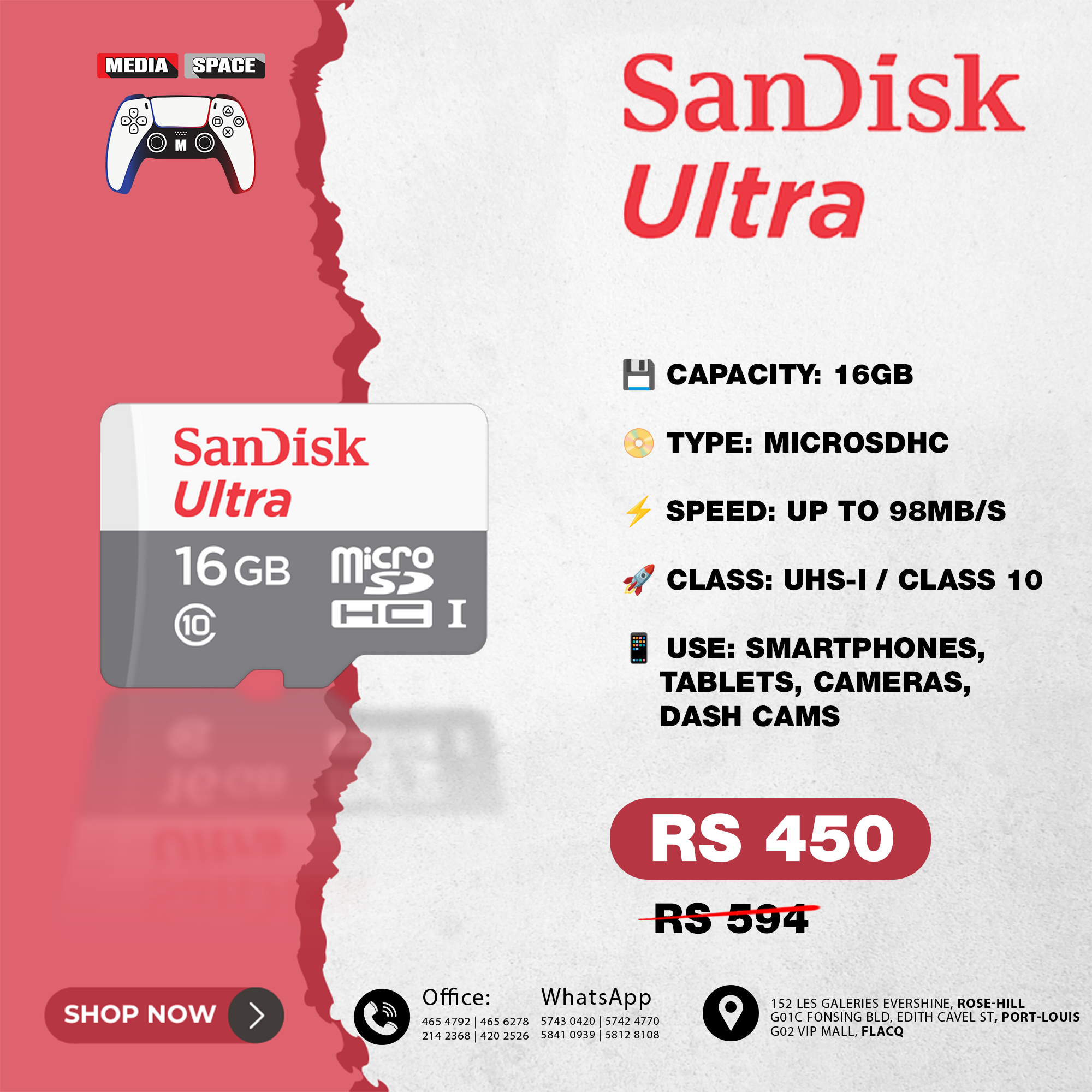 Class 10 speed rating allows you to shoot Full HD video and high quality photos.
