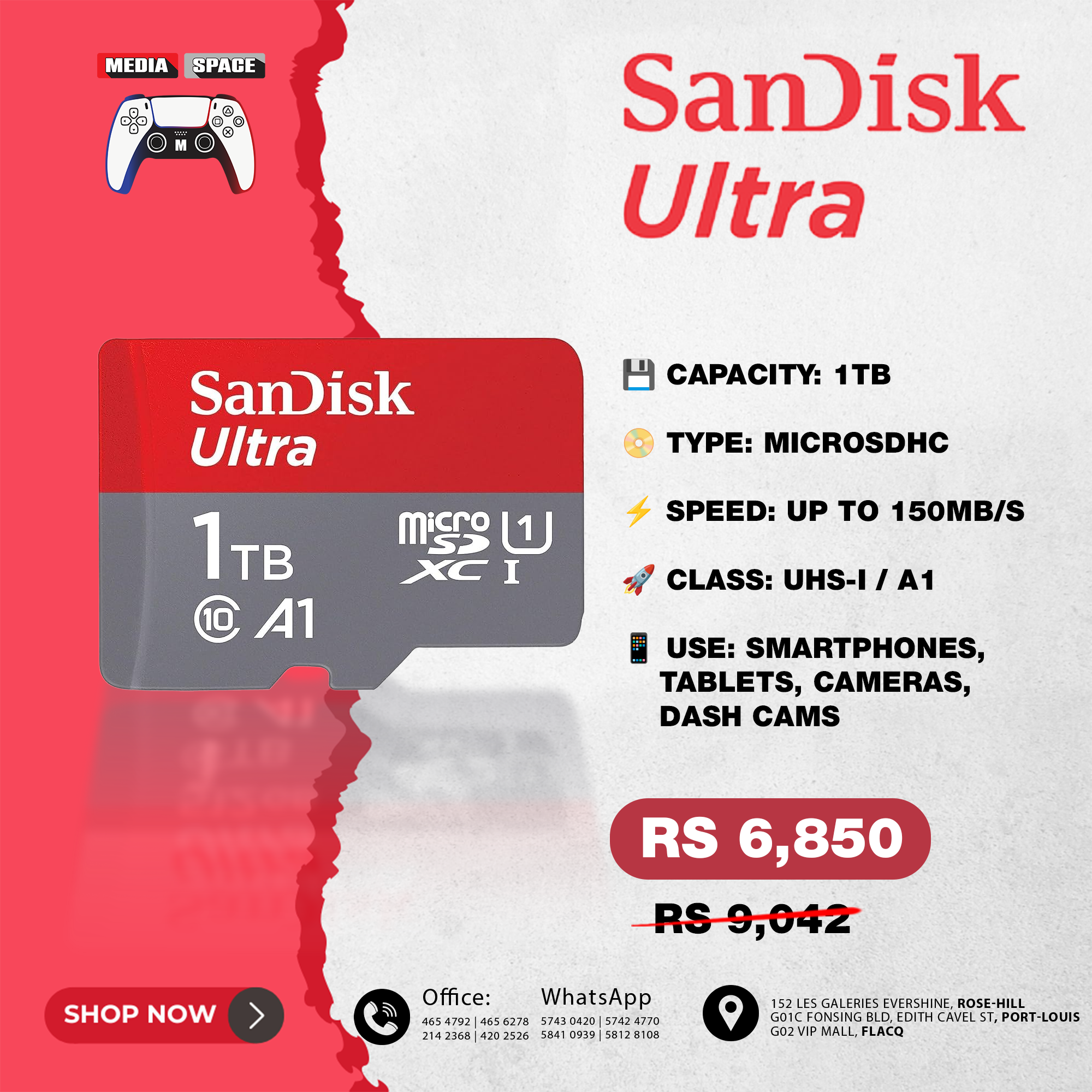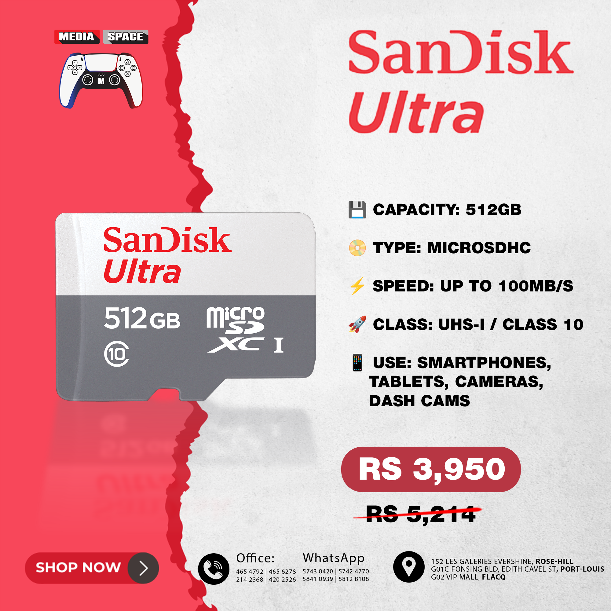 Up to 512GB to store even more hours of Full HD video Class 10 for Full HD video recording and playback SanDisk® Memory ZoneTM app for easy file management |