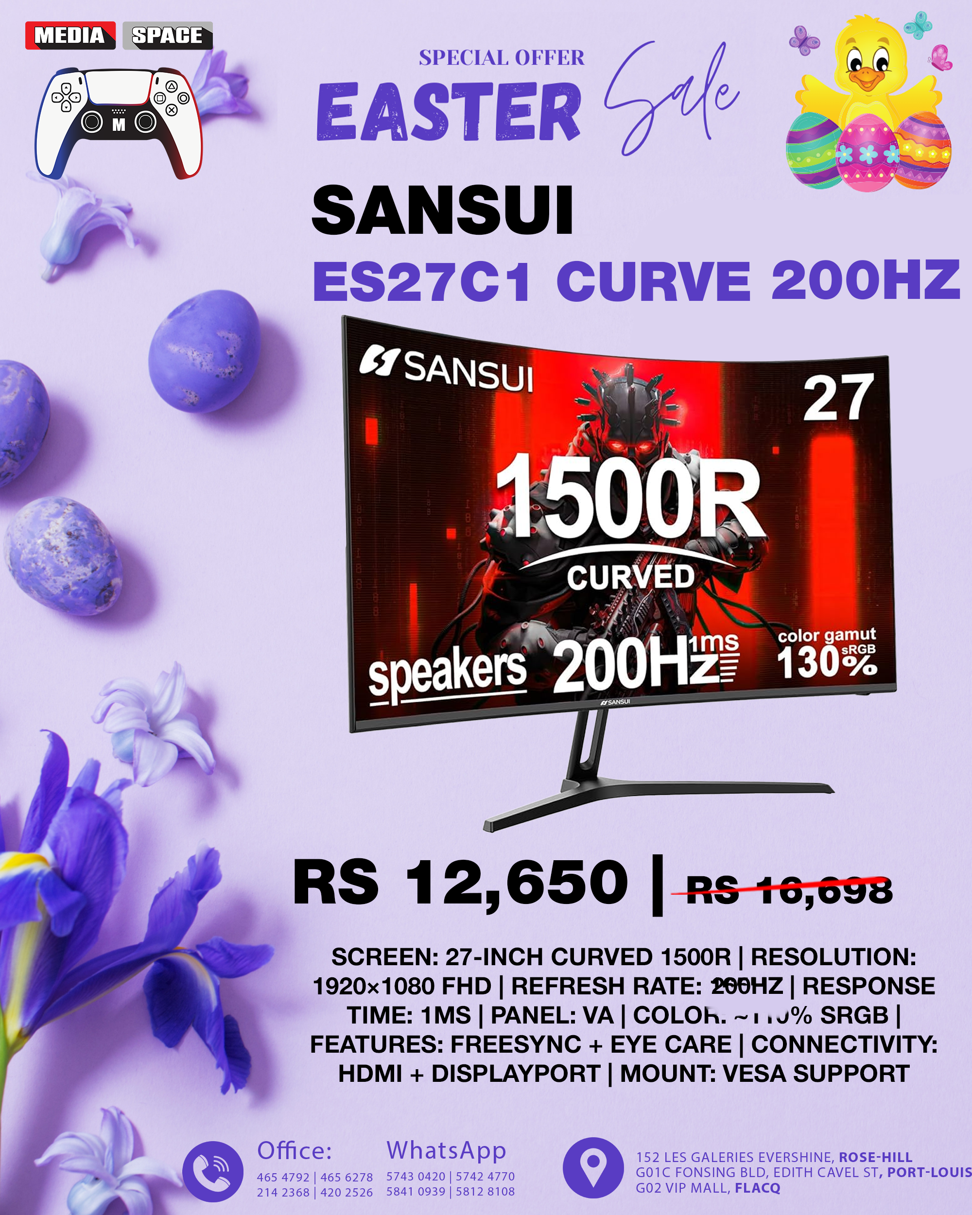 🖥️ SANSUI 27″ Curved 200Hz Gaming Monitor