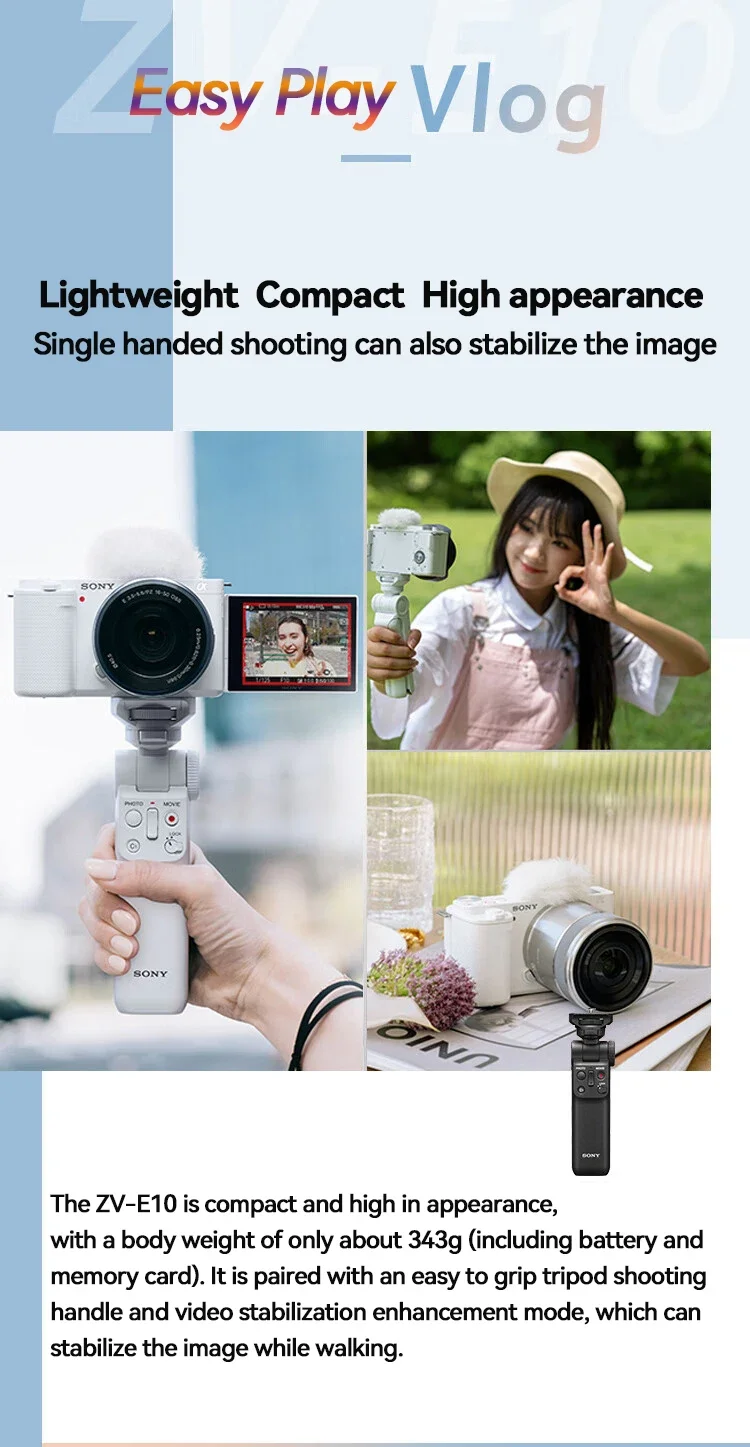 The ZV-E10 can also be used as a high-quality live camera, simply connect it to a computer, without downloading the Imaging Edge Webcam software for streaming. During live broadcasts or video calls, users can achieve better live broadcast effects through the ZV-E10’s excellent image quality, clear audio effects, and face priority auto exposure and skin beautification functions.