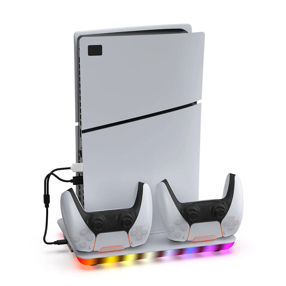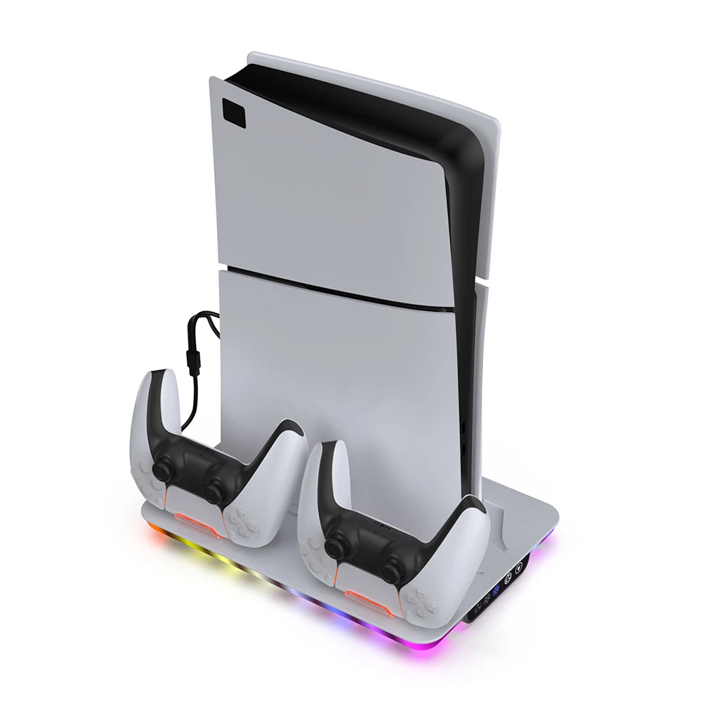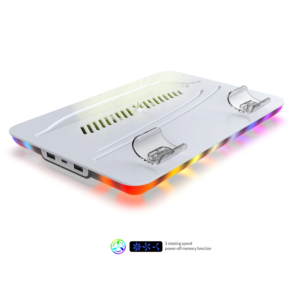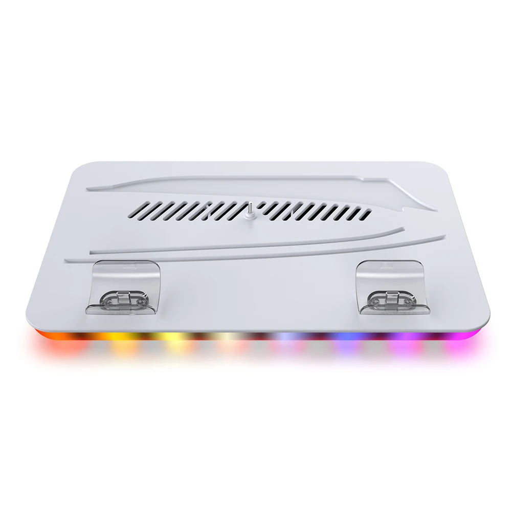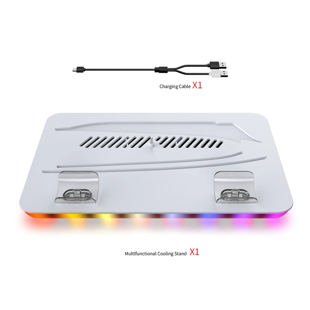 4. Dynamic RGB Lighting: Enhance your gaming environment with customizable RGB LED light strips on either side of the vertical cooling stand, offering a variety of atmospheric lighting modes to suit your personal style and gaming mood.