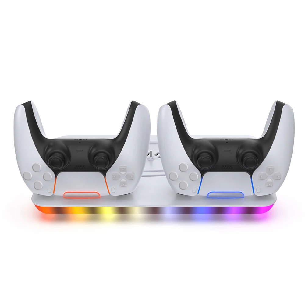 2. Dual Charging Capability: Charge two compatible with PS5 controllers simultaneously with our gamepad charging base, which displays individual charging status via distinct LED indicators, so you’re always ready for action without any guesswork.