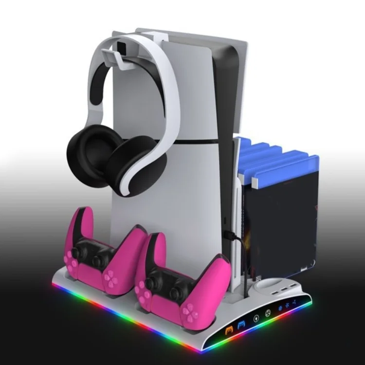1. Cooling Efficiency: Specifically engineered compatible with PS5/PS5 Slim, this RGB cooling stand features an integrated cooling system with a built-in high-precision microchip to regulate temperature, ensuring your console stays cool during intense gaming sessions.