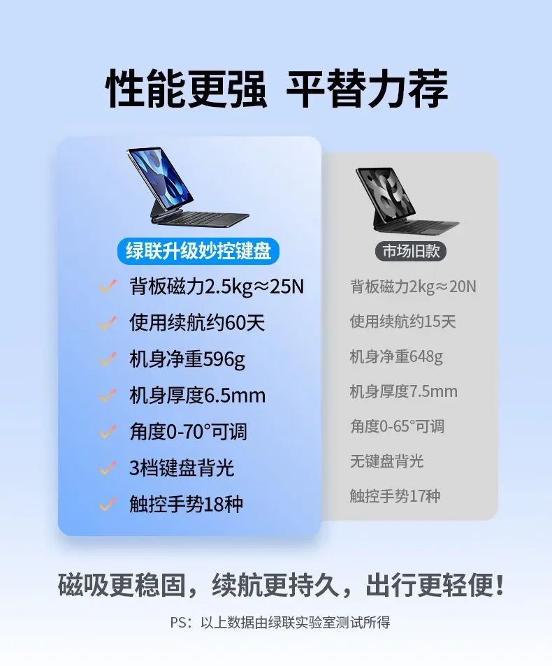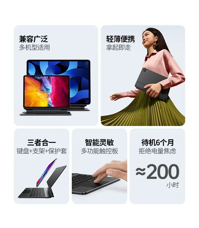 Magnetic Suspension:Magnetic suspension technology keeps your tablet securely in place while you type, ensuring stability.