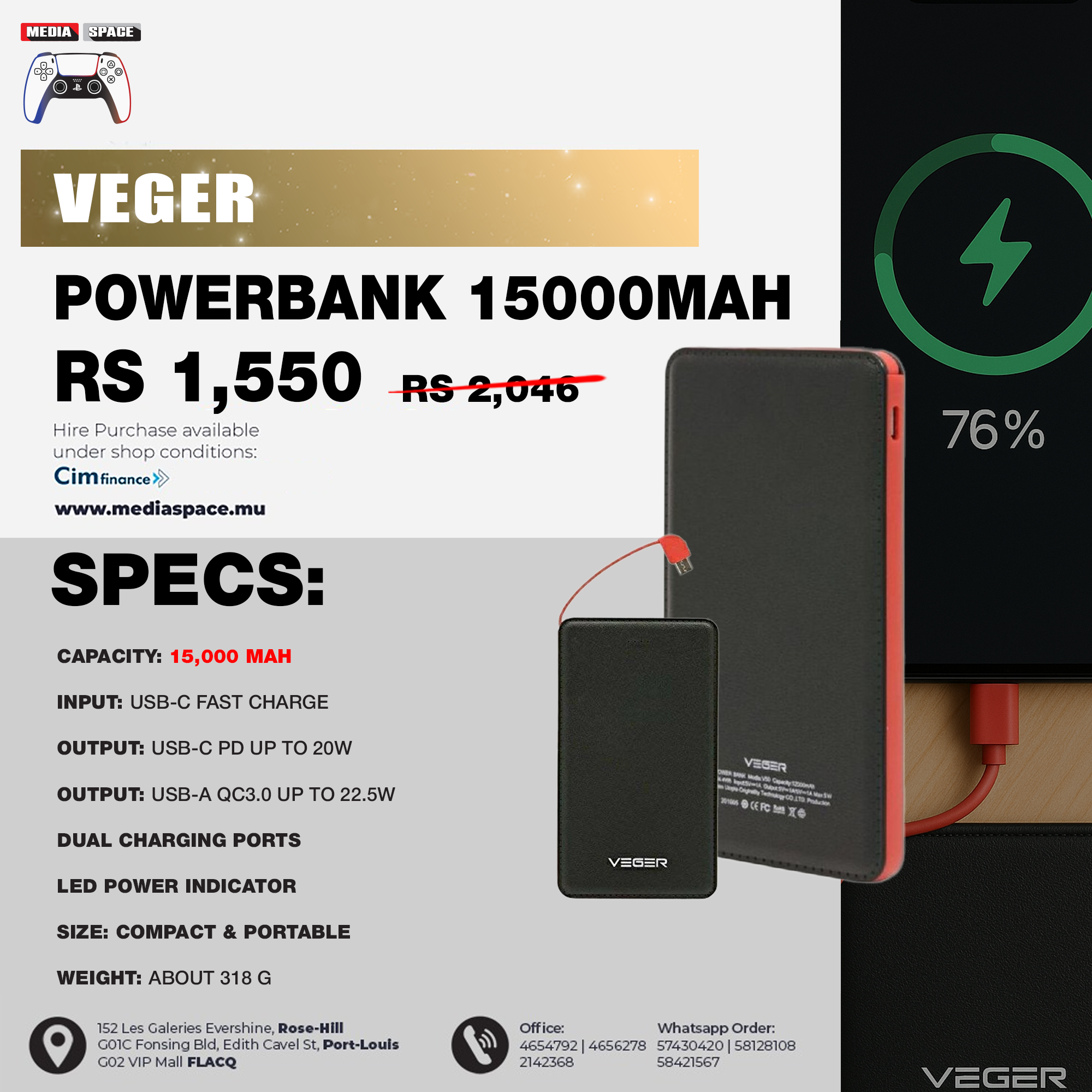 Empower your mobile lifestyle with the Veger V58 15,000 mAh Power Bank — a compact, reliable energy source designed to keep your devices charged wherever you go. Featuring a built-in charging cable and LED percentage display, it simplifies on-the-go charging without the need to carry extra cables. With multiple built-in protection systems (overcharge, overcurrent, short circuit), the V58 ensures safe charging for smartphones, tablets, and other USB-powered gadgets. Its sleek, pocket-friendly design makes it an ideal travel companion, delivering dependable power when you need it most.