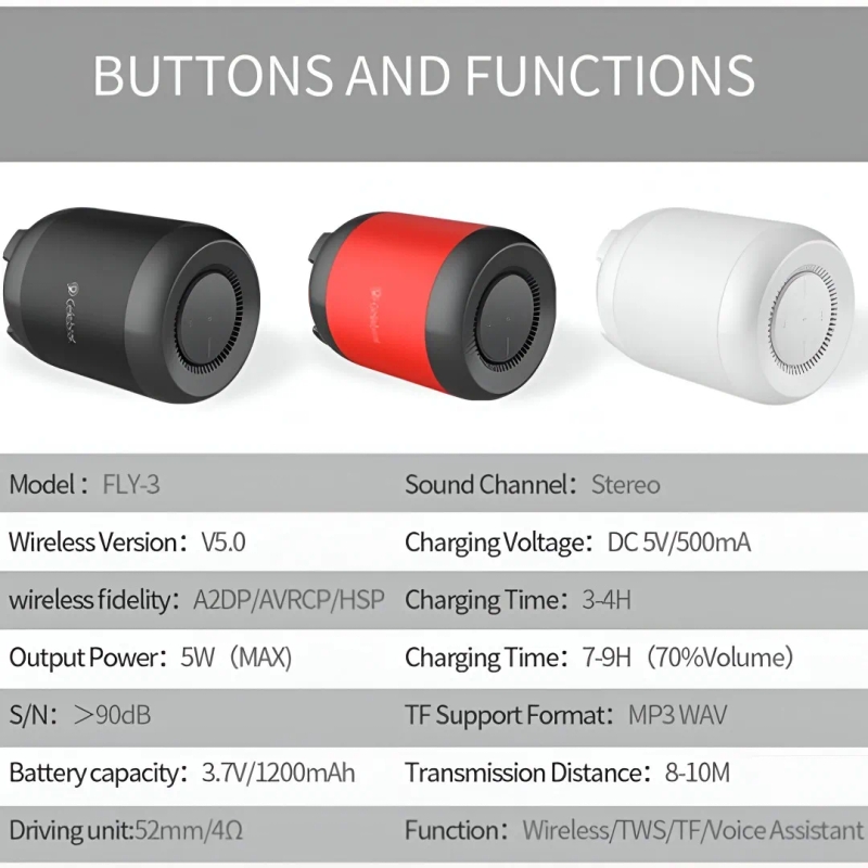 âď¸Â TWS Function â Pair two FLY-3 speakers for true stereo sound