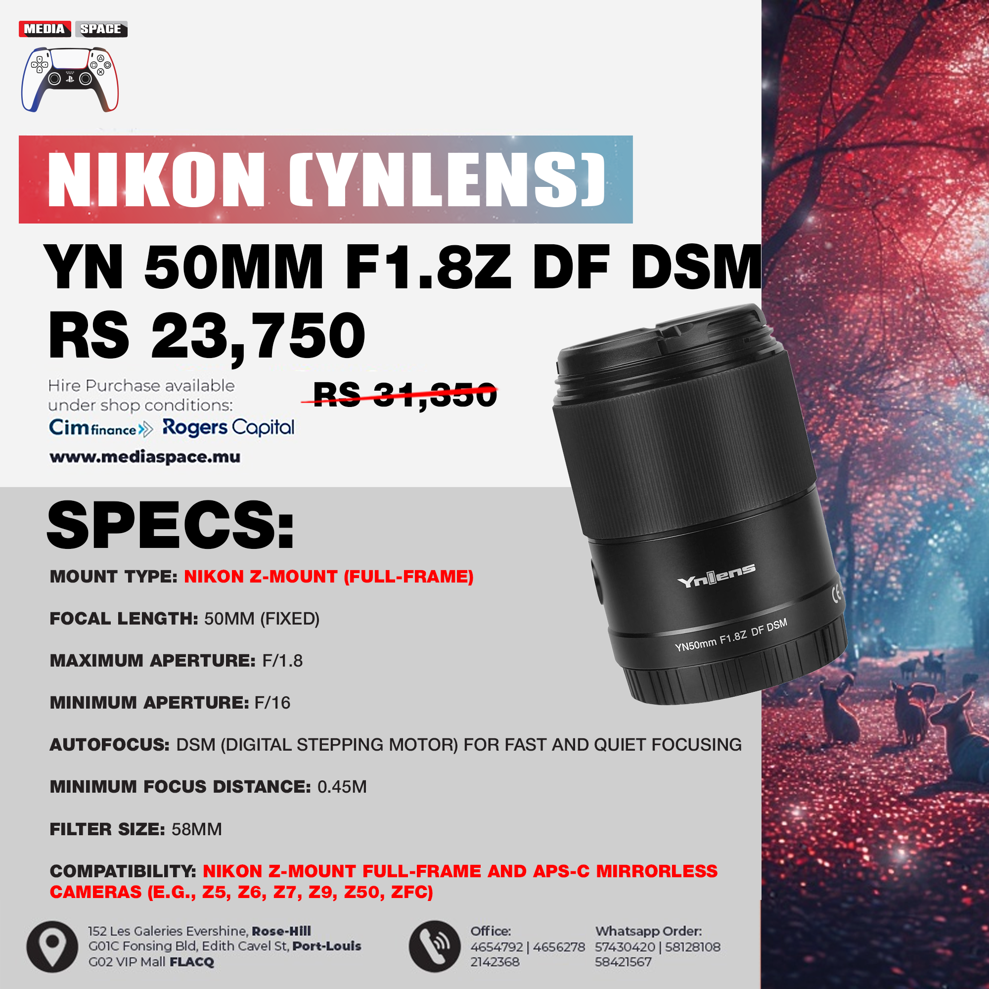 Flexible use of F1.8 large aperture, easy to obtain a soft blur effect. You can also use a low sensitivity and high shutter for shooting even in low light environment.