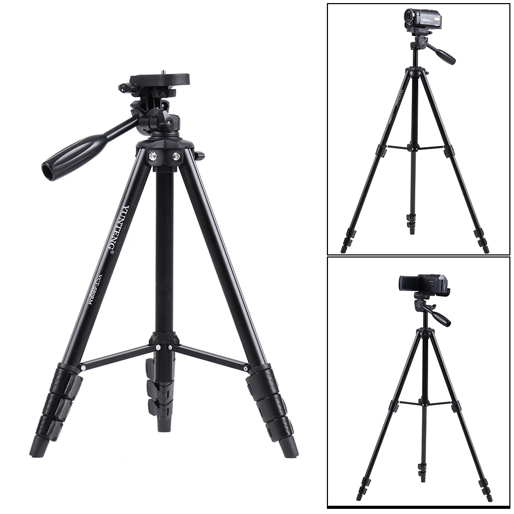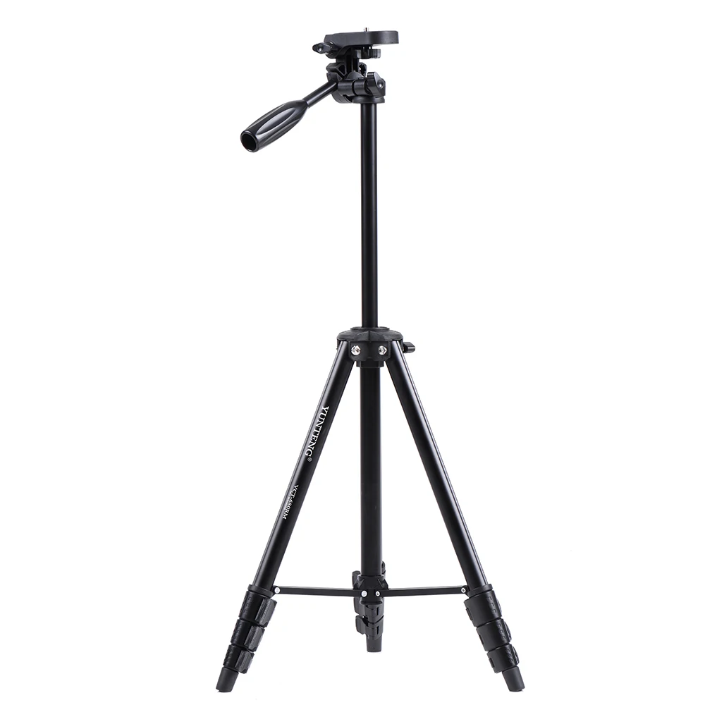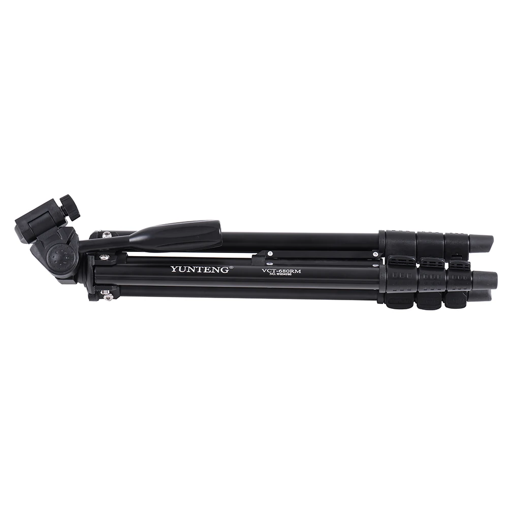 Yunteng VCT-680RMAdvanced tripod lightweight suit all-black tone, dignified rigorous, plastic and metal materials in combination, three-dimensional head can rotate 360 degrees, 90 degrees vertical shooting, exquisite, compact overall structure, with a horizontal instrument, easy to balance measurement , four extendable tripod legs design makes it shorter and more portable; with the original tripod bag for easy collection.