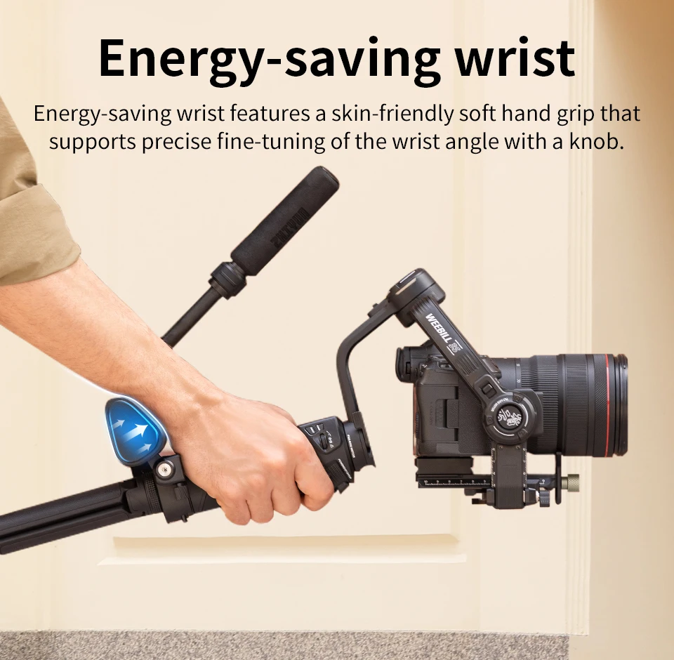 The cutting-edge design in the grip allows for left and right tilt adjustments to the direction of the gimbal handle as well as the grip center of gravity.