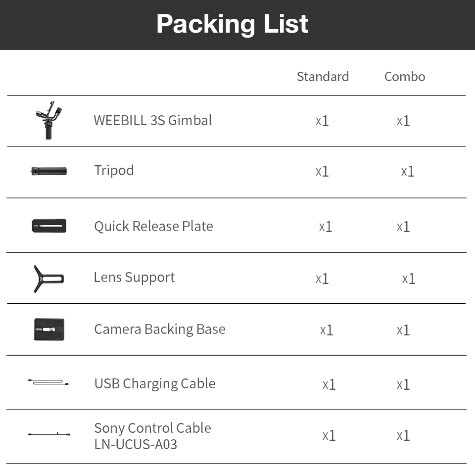 Weebill 3S compatible with most DSLR , mirrorless cameras and mainstream lenses.