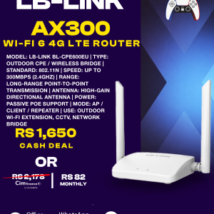 ♦ 4G Wi-Fi 6 LTEAchieve download speeds of up to 300mbps with 4G Wi-Fi 6 LTE technology. This advanced technology reduces co-channel interference and expands the wireless transmission range for a more stable and reliable connection.♦ High Gain AntennaWith the addition of dual external antennas, this device is providing a stronger and more stable connection. It offers wider signal coverage, ensuring a reliable network connection throughout a larger area.♦ Easy SetupEffortless setup: Simply insert a standard SIM card into the router, and it will seamlessly convert 4G LTE into a Wi-Fi hotspot. This device enables direct access to the internet without any additional steps or configurations requiredSKU: n/a -